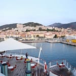 Wir hatten einen ruhigen Seetag auf dem vorderen ruhigen Pooldeck und erfreuten uns an den Anblicken von rechts Korsika und links Sardinien.